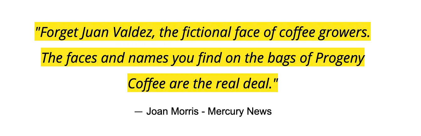 When the farmers sell their coffees to us, instead of relying on the market prices that unfairly fluctuate, we give them a set price per score. Progeny continues to grow exponentially and currently has doubled the income of over 25 farmers!